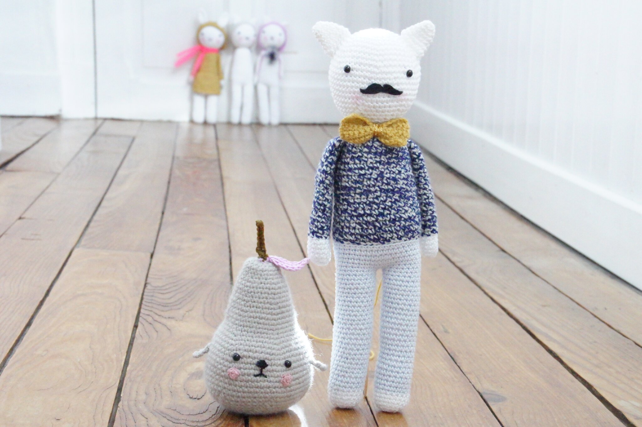 une petite poire à la manière des illustrations de "fine a little day" que j'aime beaucoup et un petit gars à moustache pour changer un peu et pour penser aux petits garçons / il n'est pas encore terminé, je m'interroge sur la forme de la moustache qui est juste posée pour le moment, puis sur la forme et la couleur du noeud papillon, si je lui brode des sourcils ou pas....quand les journées seront un peu moins chargées, quand les microbes laisseront un peu de répit à mes filles j'aurai les idées plus claires ;) / bientôt le week end ;)